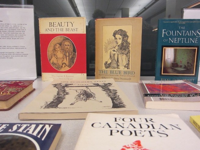 I jumped around, reading out of sequence, sometimes browsing the 144 pages like a catalog. I kept thinking, oh just one more, addictively fascinated by the easy prose and uncomplicated explanations about songs such as “Layla,” “Maggie May,” “Fire and Rain,” “It Ain’t Me Babe,” “Tiny Dancer” and “Uptown Girl,” to name a few. Also in the bunch, Steely Dan’s “Rikki Don’t Lose That Number,” inspired by author Rikki Ducornet. And here serendipity played a hand. The night after reading about the Steely Dan song, I went to an event at The Ohio State University’s Rare Books and Manuscripts Library showcasing recent acquisitions. There on a table was a spread of Rikki Ducornet’s newly acquired books. See below.