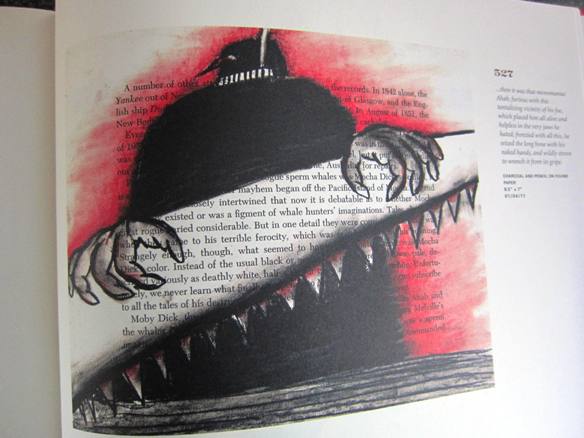 I heard Kish speak at the official book launch held at the Wexner Center for the Arts where he remarked that as he got further and further into the project, he struggled with the relentless schedule that at times became depressing and bleak. It didn’t help that his creative space was the size of a closet – because it was a closet, approximately three feet wide and six feet deep. Much of Kish’s story about his days illustrating Moby-Dick in Pictures can be read in his book’s Foreword and also on Kish’s blog, which began the day he started the project, August 5, 2009.