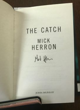 This year Mick Herron published The Catch, a slim read set in his award-winning world of disgraced British MI5 agents who are minimized to tedious office work because of career-ending blunders. They live for the unlikely possibility they’ll be brought back to coveted field work by Regent’s Park, spy headquarters overseen by the daunting Diana Taverner. The Catch came to my attention when The Mysterious Bookshop offered a signed first U.K. edition. That, combined with the temptation of discovering an absorbing espionage series, caused my “must have” and “add to cart” reaction.